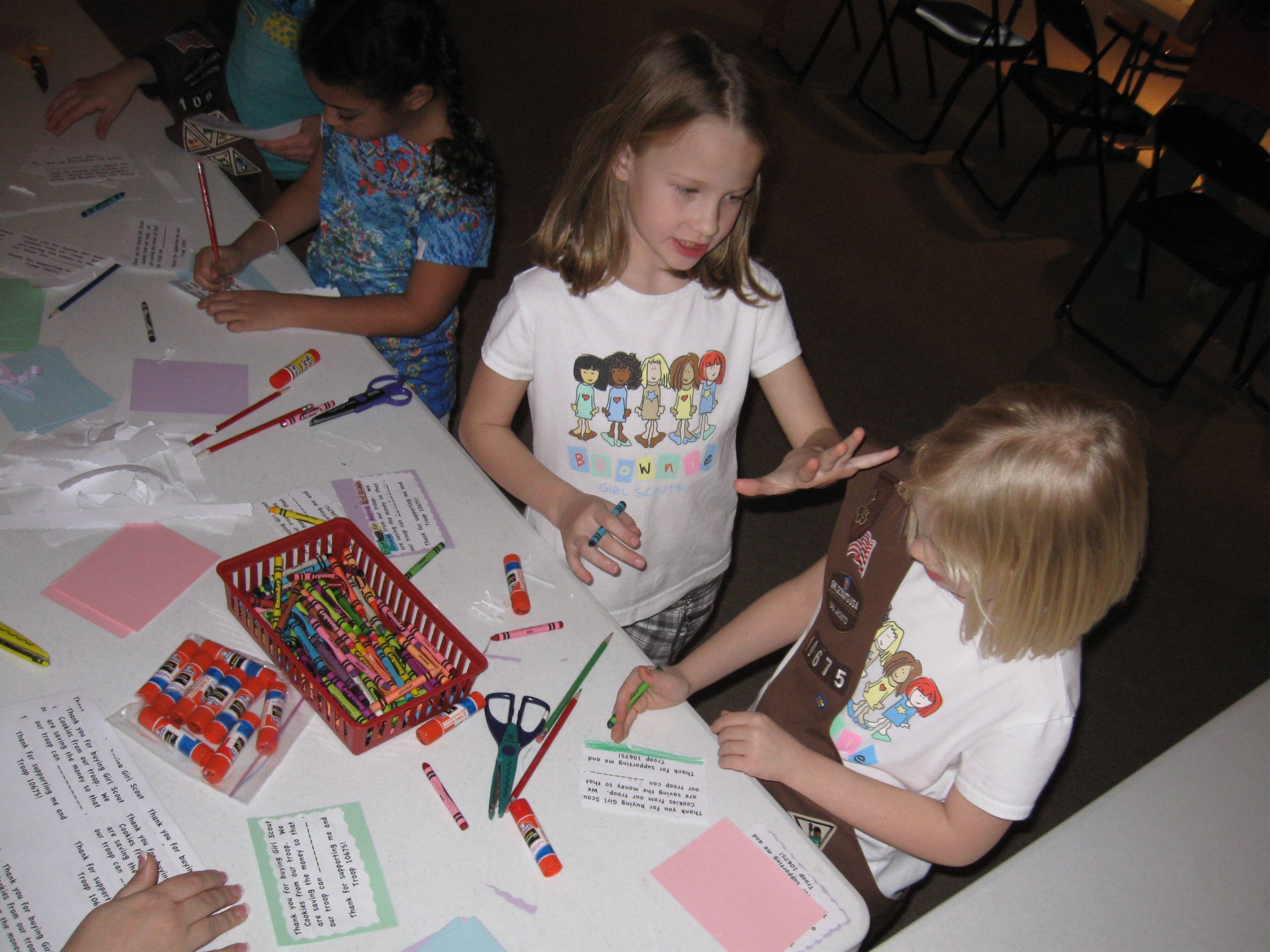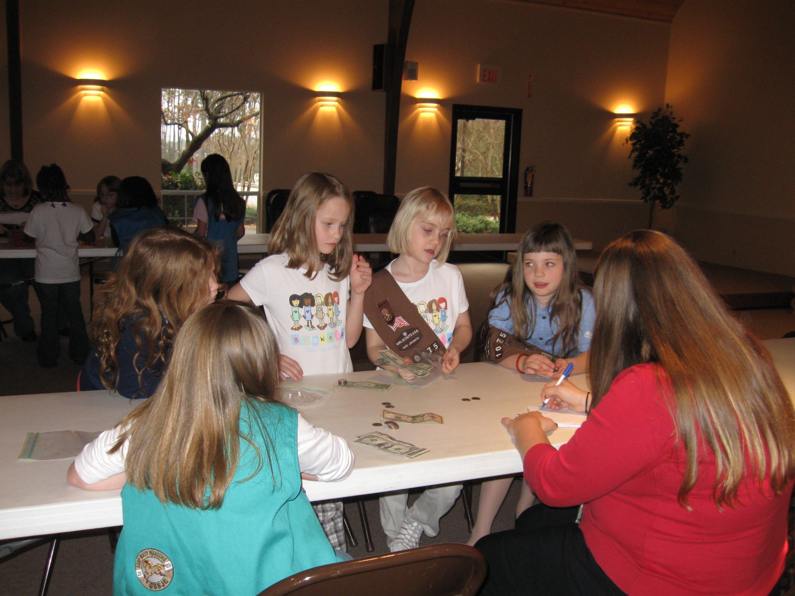 I swear Madie could sell ice to eskimos. A newspaper report came to our Girl Scout meeting today. We even had a visiting Girl Scout come to our meeting in order to speak with the reporter. She (the one in the green vest)sold over 1000+ boxes last year. Now Madie has upped her goal for selling cookies. Does she realize that I have to deliver all of those cookies? Not wanting to be someone who stands in her way when she makes a goal . . . I guess we will be walking the streets of our neighborhood this weekend selling cookies.