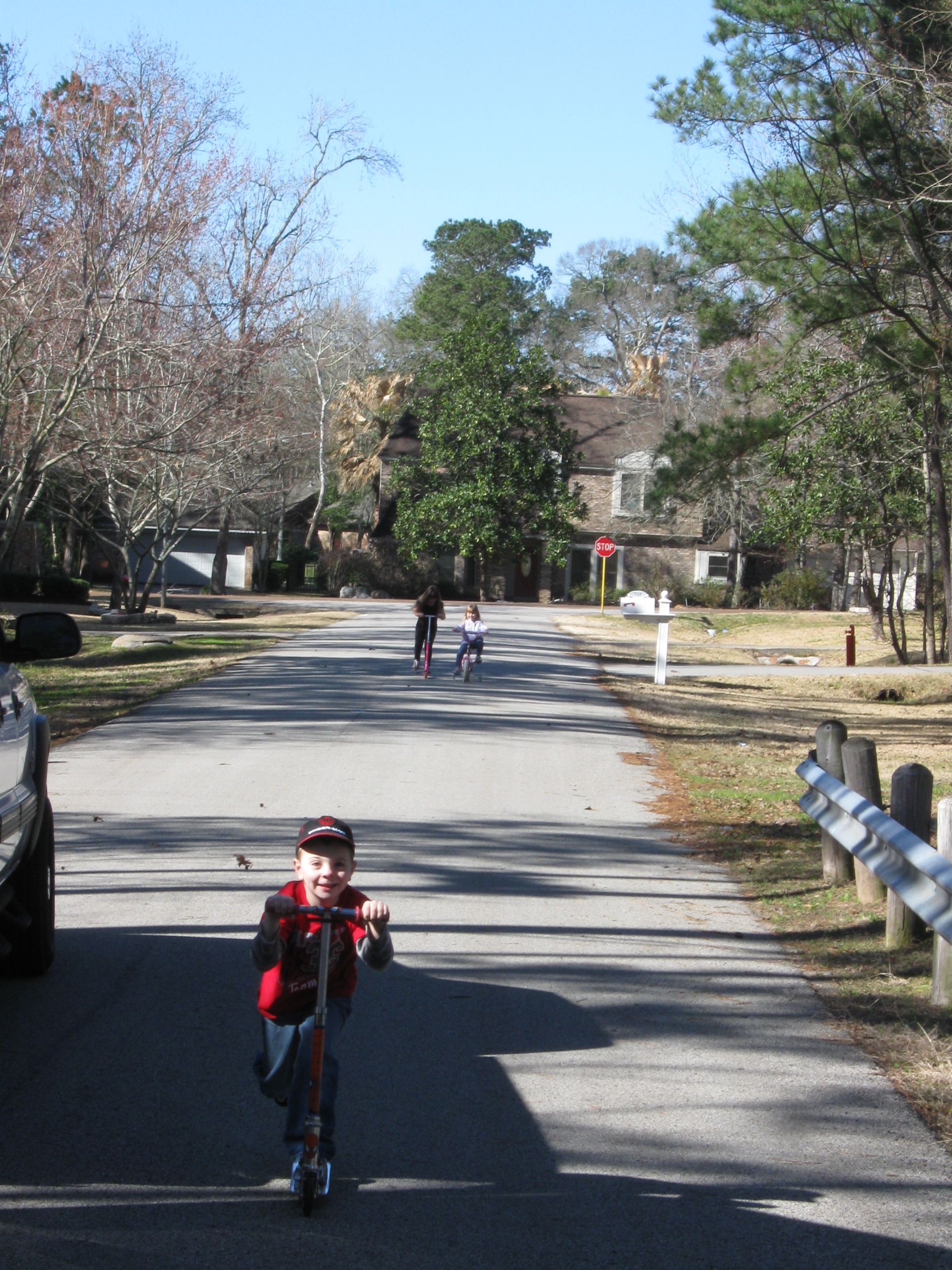 We are at the dinner table tonight eating our lovely chocolate cake for dessert (a rare treat) when I look over and see Ben licking his finger and wiping the plate clean. I say to Ben, “Ben please stop.” No response. “Ben stop!” No response. “BEN! STOP NOW!” By this time, the whole table is looking. Ainsley was helping mommy by yelling at Ben to stop. Madie was looking at Ben with dismay. Chris was laughing hysterically which did not help at all. The laugh was so contagious that the whole table was laughing except mom and Madie (way to go, Madie!!). Then Ben thought it would be funny to start licking the plate. It just went downhill. Chris did not help the situation. I had to get on to him for antagonizing Ben into worse behavior. He kept saying, “But it IS so boy and so funny! And the cake was really good!” Finally Dad told Ben that he and Ben were in the minority and it would behoove them both to start living by the woman’s rules in this house. When it is just him and Ben, it would be ok to lick the plate. Great! Thanks, Dad. You were doing good until the end!
