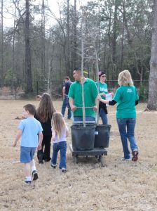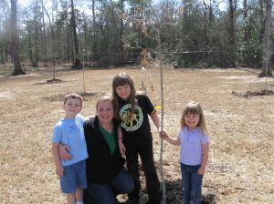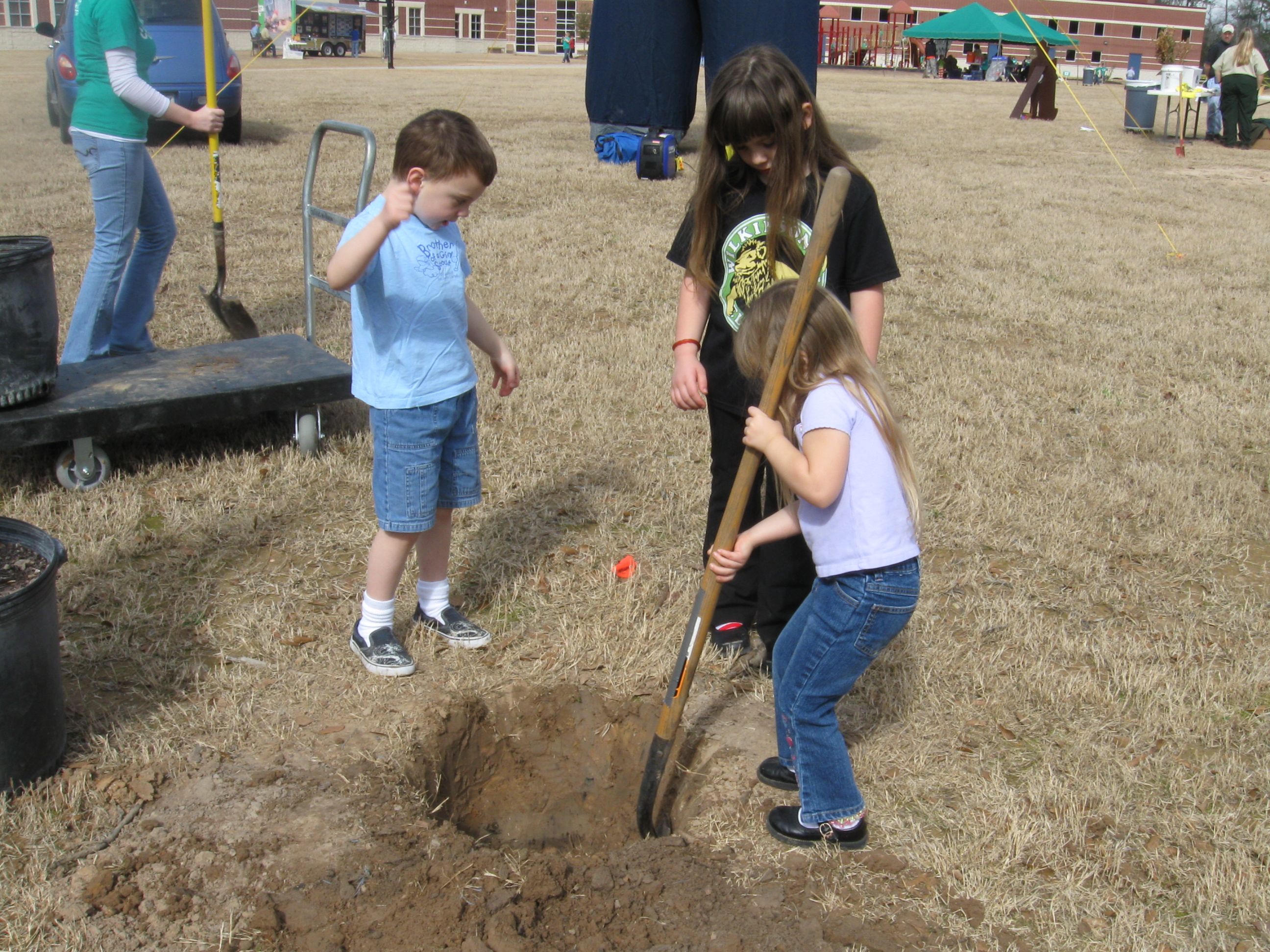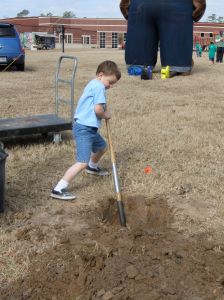 We went to the event (eventhough I was reluctant because I had waaaay to much to do today, but there were tears . . . so we went) at our elementary school today. It turned out to be a lot of fun. The kids had a good time even if mom didn’t have enough coffee this morning. We had not intended on planting a tree, but we just couldn’t turn down the opportunity once we got there.
