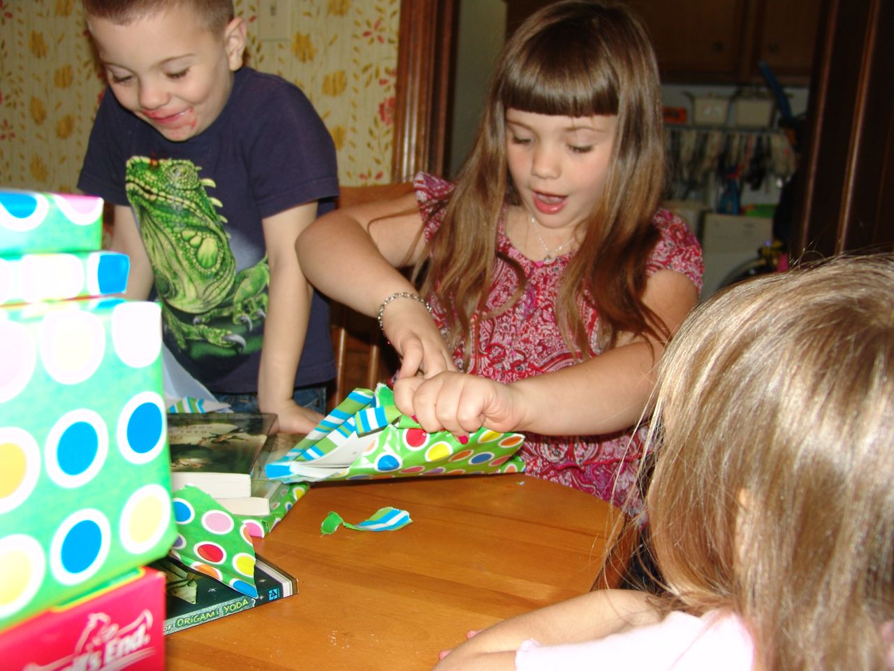 My idea did not work out so well. But at the end of the day, the kids brought down all of their presents and are quite proud of their creations. And I am sure that Megan, Gordon, and other family members will be thrilled to rip open all of those presents!