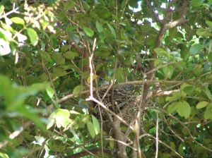 In the process of picking our plums, we discovered a bird’s nest in one of the trees in the backyard. We saw some of the babies sticking their heads out, but the mommy bird soon tucked them back in once she realized that we were there. Ainsley struggled to see the birds but between Chris and I we got Ainsley to see the bird. She was really upset about struggling to see it.