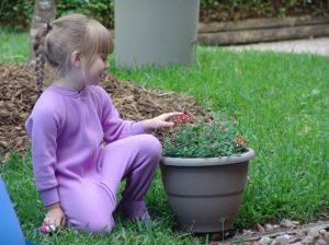 Her flowers look great! She says that she finally has a tall flower! Yeah!