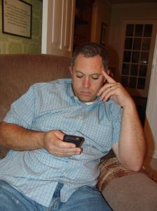 This is Dad. He is supposedly “talking” to me while he is also focusing on whatever conversation is happening on his phone!! But we love him anyways!!