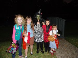 After the fifth house, Ainsley was done and wanted to go home. She had enough candy she said. After less than an hour of trick or treating the youngest two went home and helped Daddy pass out candy. Then I took the older girls for another half and hour just by themselves. They all had a good time. By the time, we got home and settled I was tired. At 8:30 we turned out the lights and locked the door. We still had kids come up to 10:30 that night. Where are their parents? These weren’t high schoolers. They were about middle school age. I finally admonished the last set about trick or treating at houses whose lights are out. Geez.