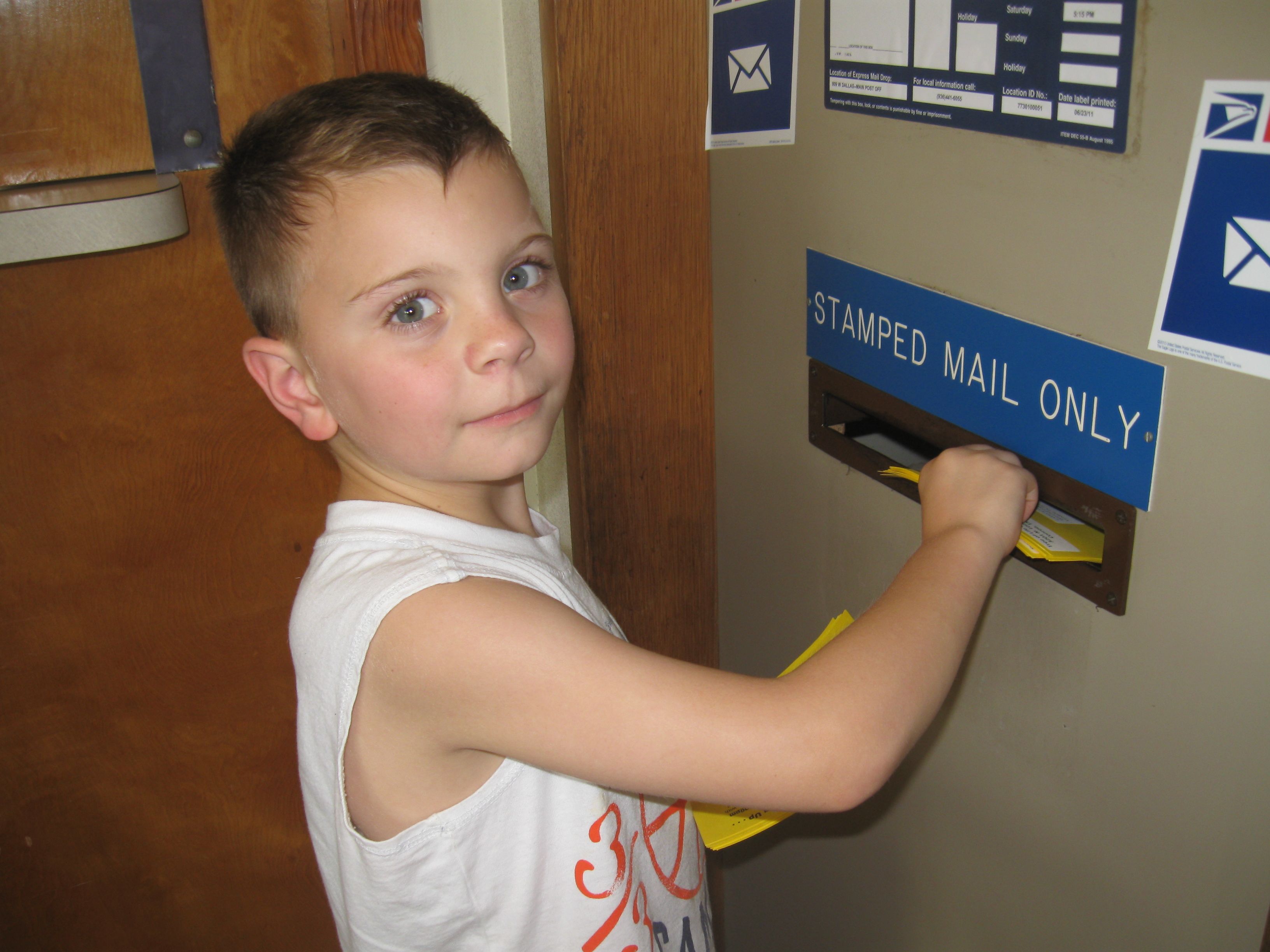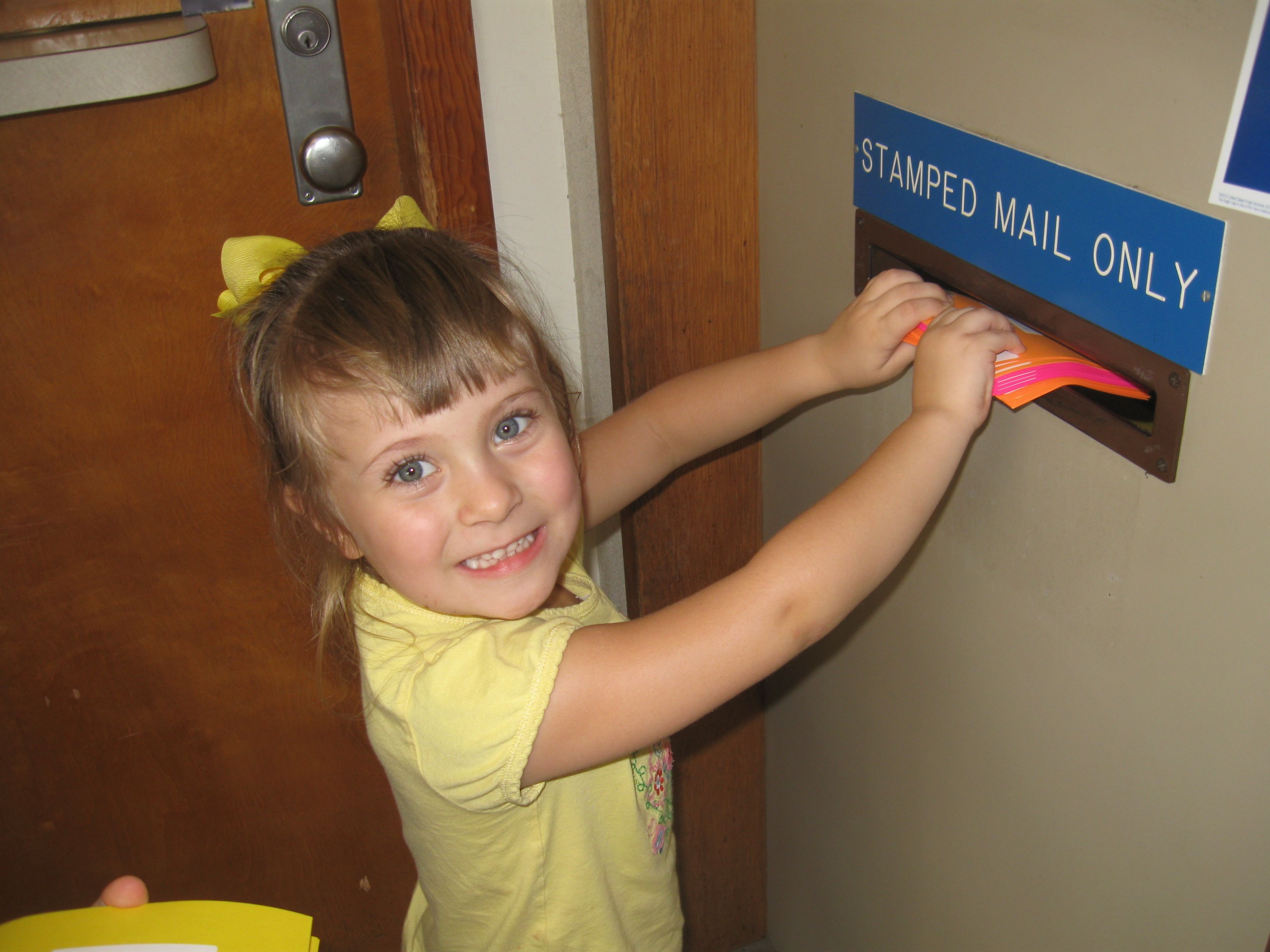 Our church had a great summer program this year for kids and families. Some of the families of the church sponsored fun activities for the kids/families to do together this summer. I volunteered to mail postcards to everyone and to all of the visitors to VBS. I totally underestimated the amount of time it would take me. In the end, the kids thought it was a great adventure and helped me to cut them all out, label and stamp them. The best part of the job was sticking them in the mail slot at the post office!!!