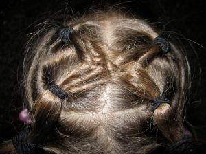 A picture of the weaving in Ainsley’s hair