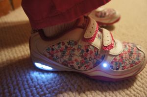 When we finally made it to the store, it took several different shoes and to let the employee go and help some one else before Ainsley could decide on a pair. There was even some “Eeany Meany” going on. She finally picked the pair that lights up and makes her run fast. I’m just glad that she picked a pair that will go with most of her outfits and especially her dresses for school.