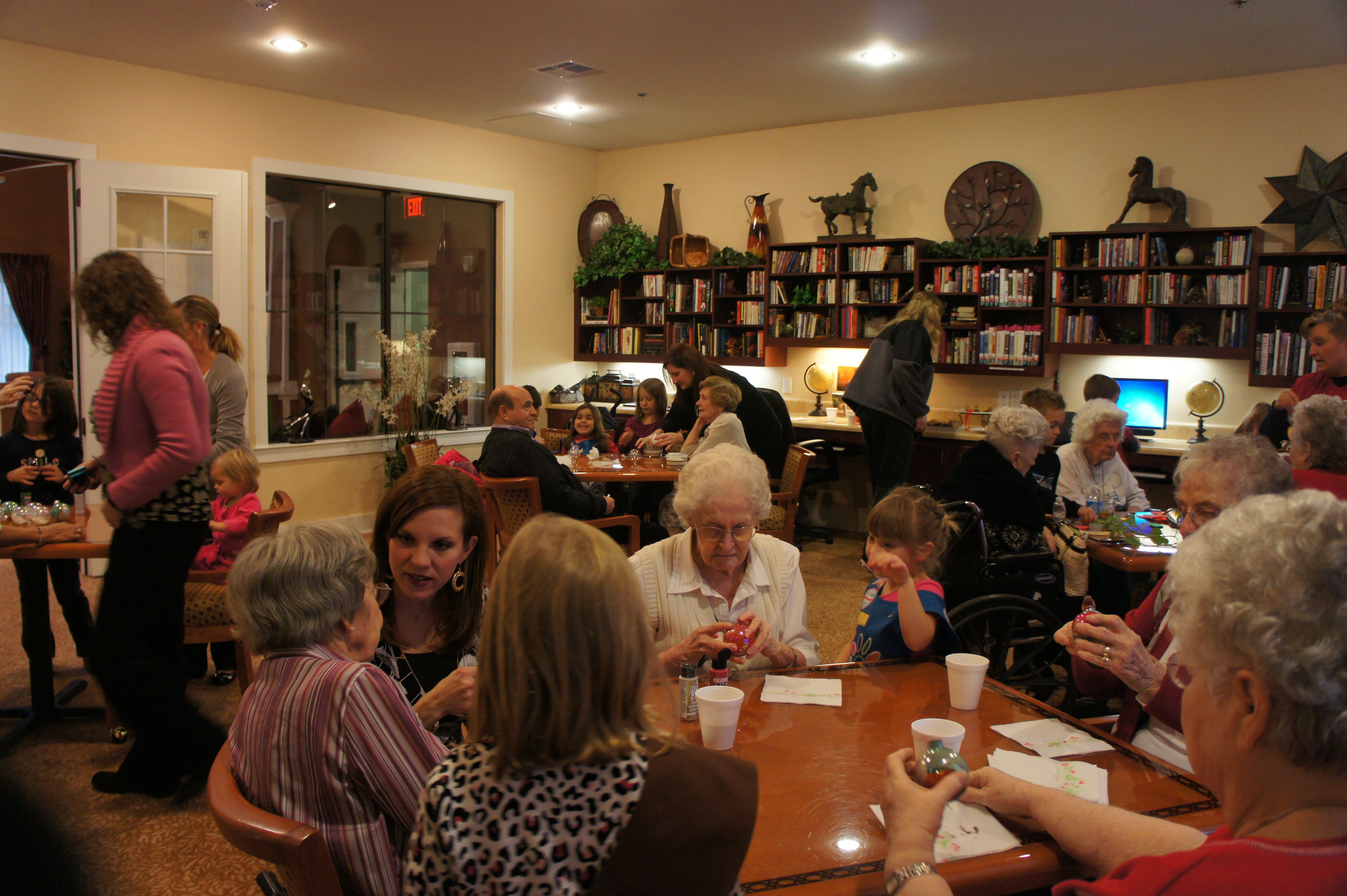 Ainsley’s troop met at one of the local nursing homes and made ornaments with the residents. Ainsley found a table full of buddies that listened to every word that she said. She was in heaven. All of the girls had a good time. I think the residents had a good time too. One of the ladies at Ainsley’s table (not the one pictured) couldn’t get enough of A. She just kept patting her arm and holding her hand. And God bless Ainsley, she didn’t budge or even see to be bothered by it. The entire event was wonderful. Smiles were had by all who came!!