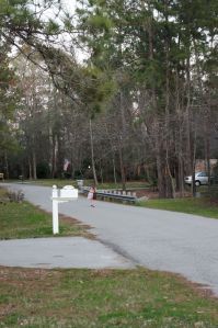 When I saw the note (which was so awesome), I immediately grabbed my camera and ran outside. I hid behind the car and watched her walk to Sonijah’s, then turn around and walk back. She kept turning around hoping that someone would come after her. After watching a couple of other kids run away, I learned that the best thing was to not pay any attention. Then they don’t do it again!