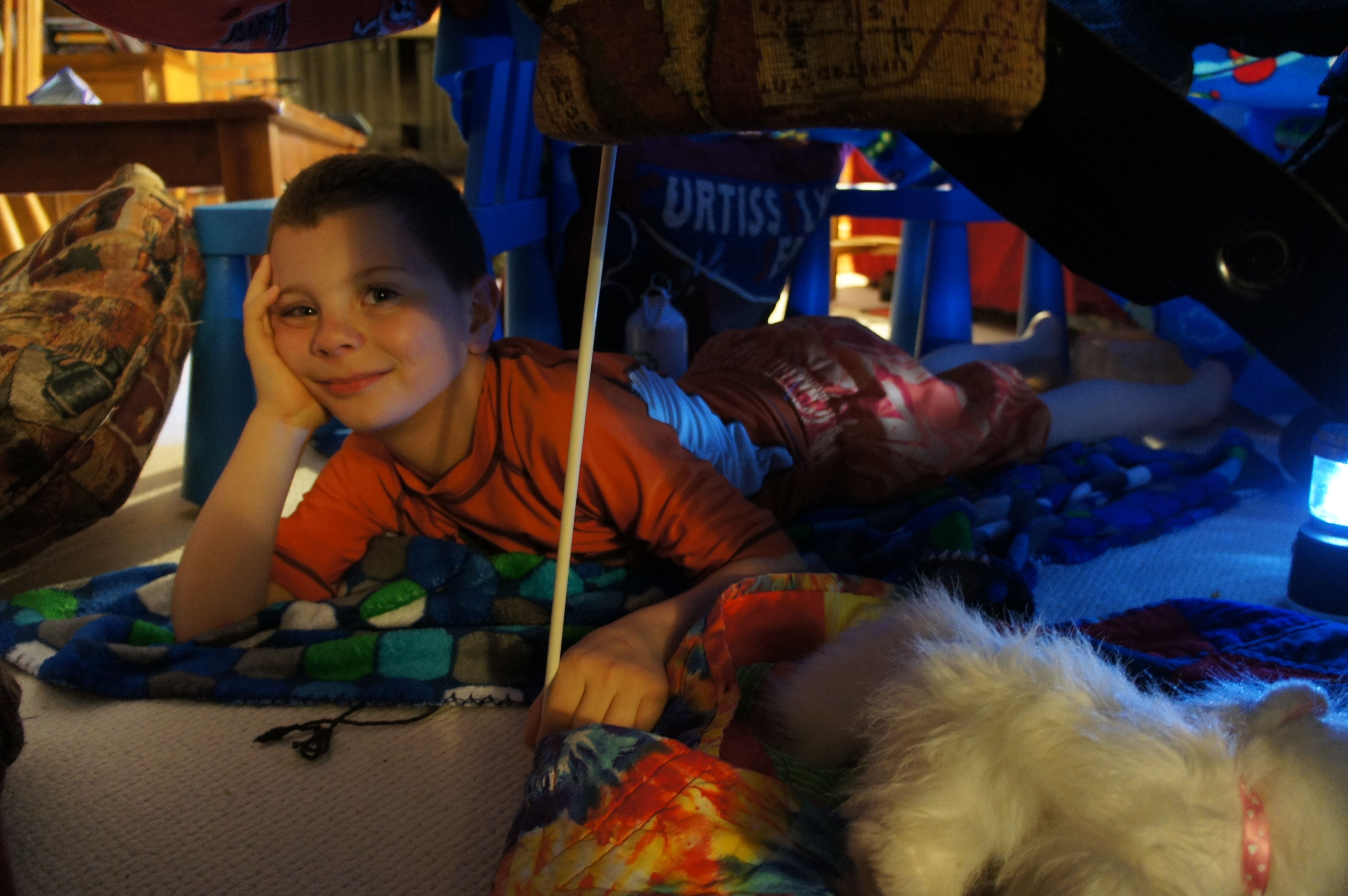 The topic is old, but their creativity is new. Ben’s tent had super weapons for protection similar to the Bat cave. Ainsley was a full service salon. She wanted me to crawl under so she could give me a pedicure. I can’t even remember why they are all in the bathing suits! Hopefully they were going swimming soon?