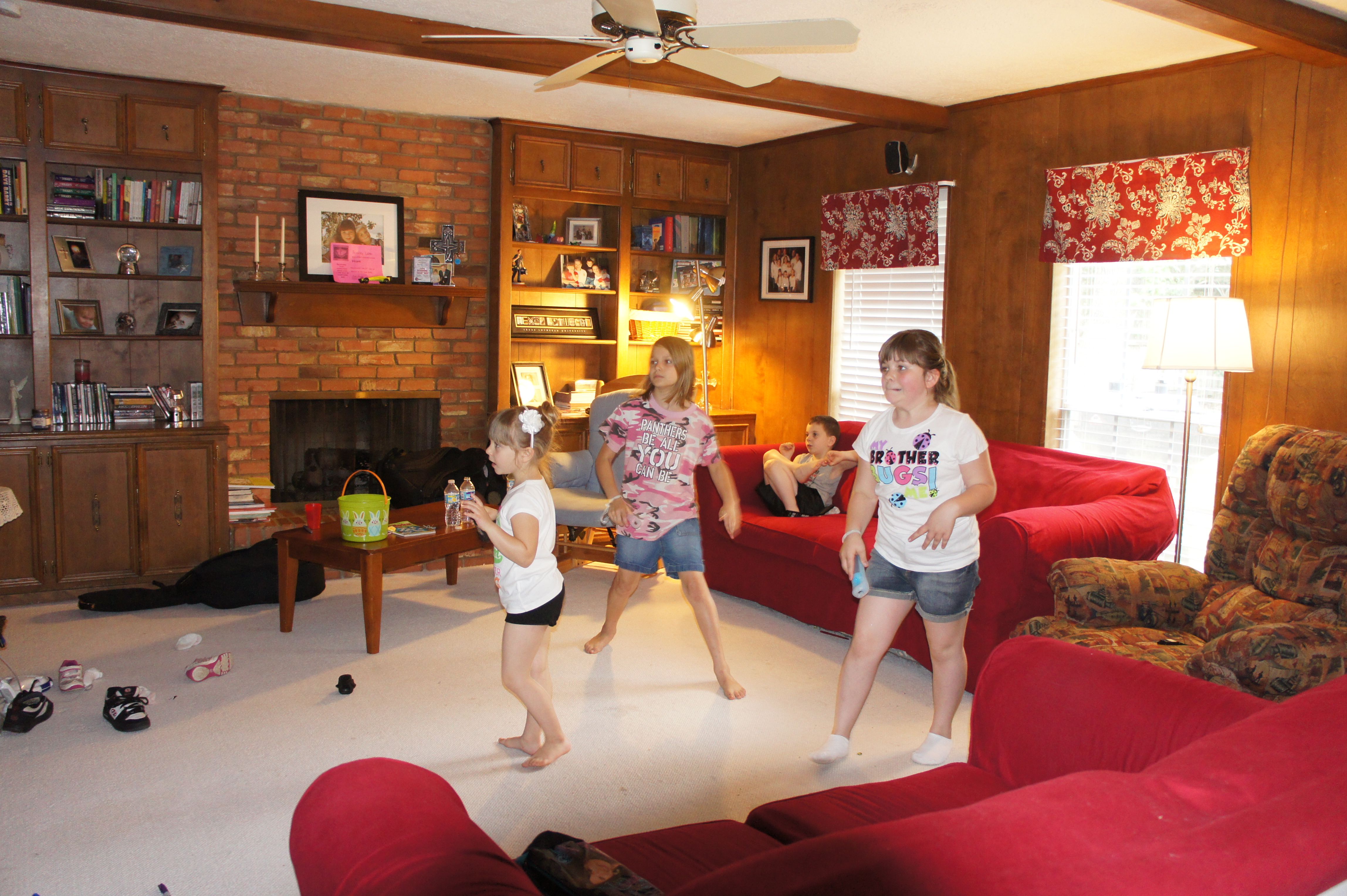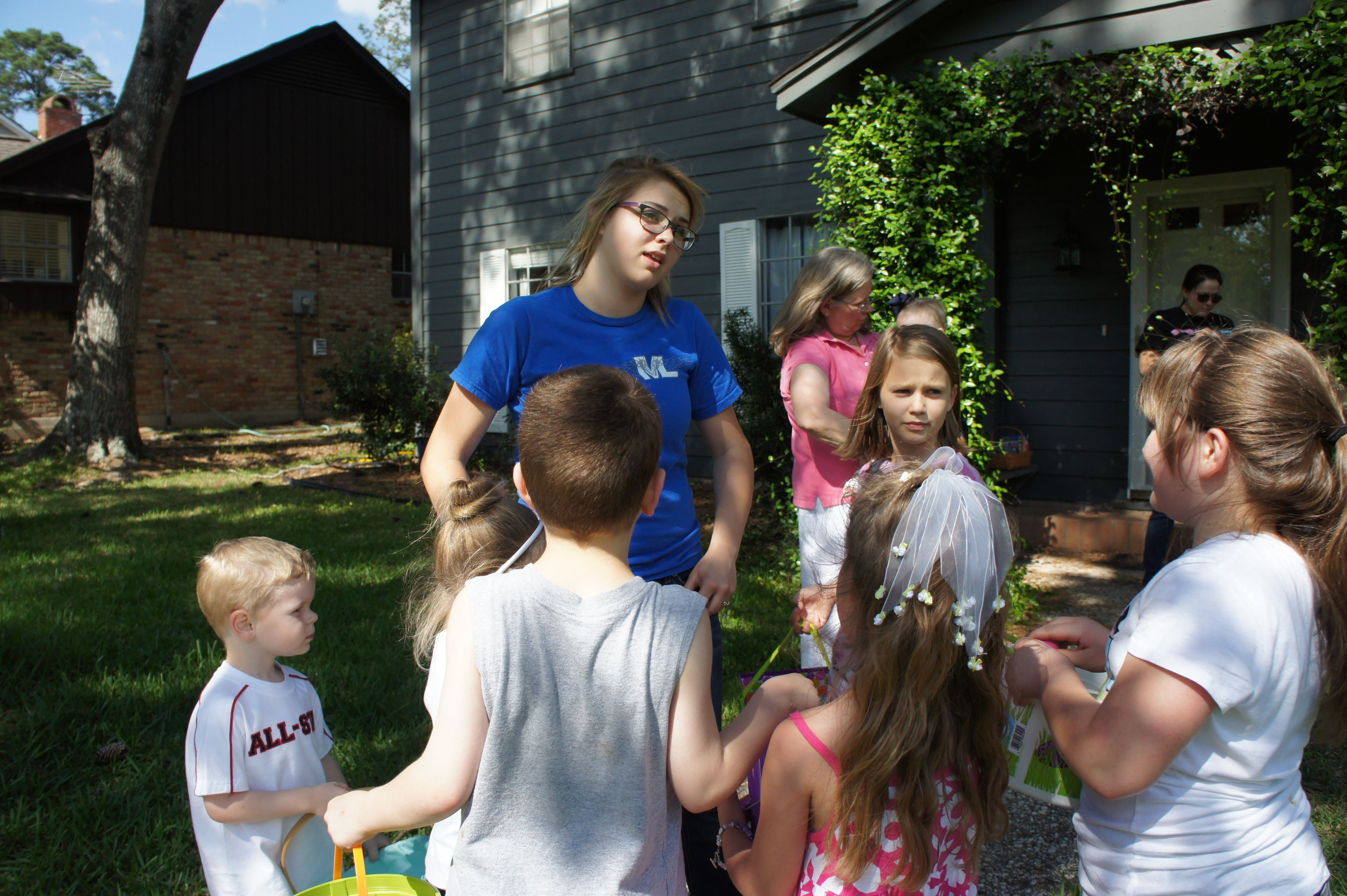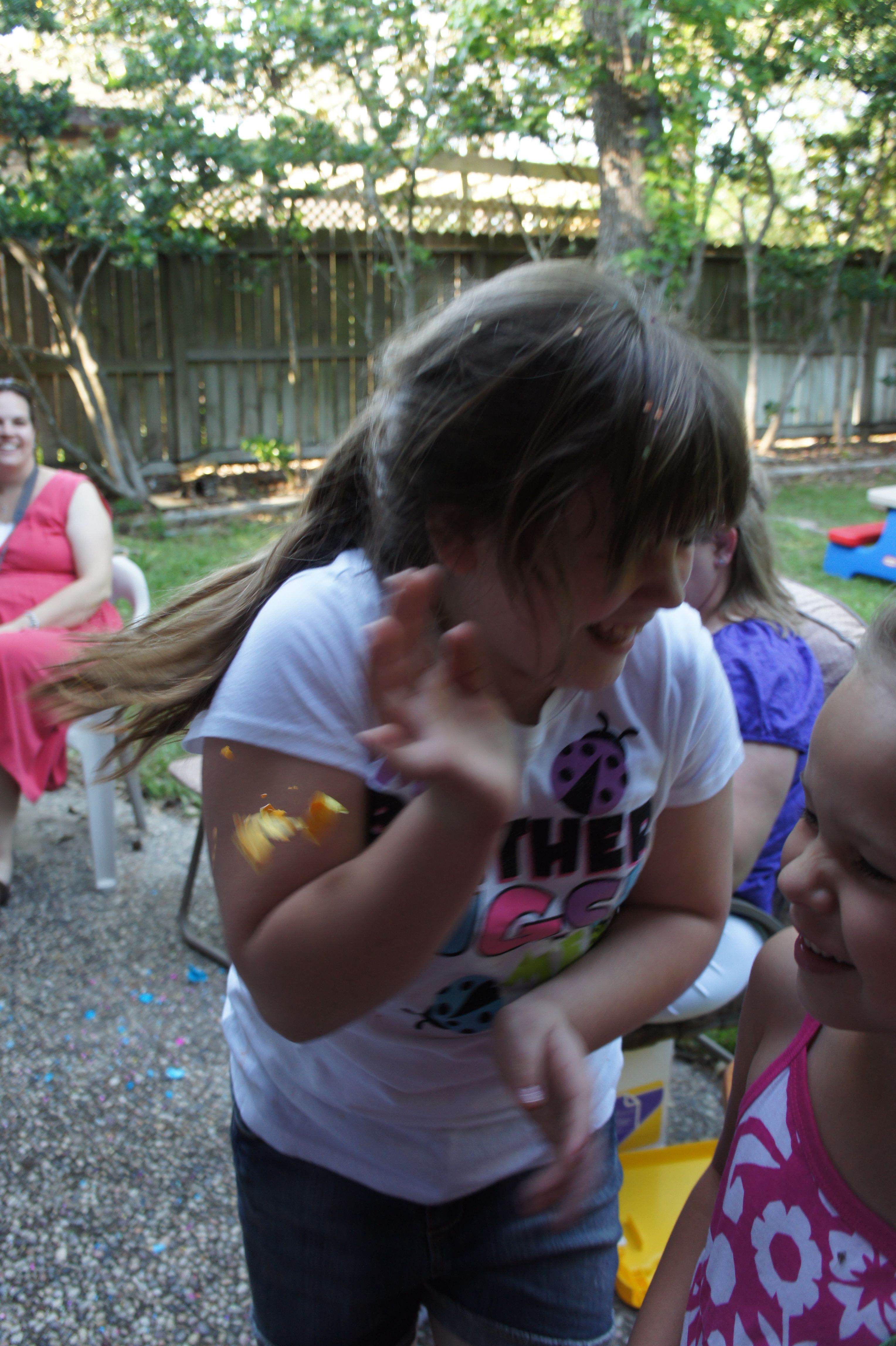After church we were joined by my family and friends. It was perfect. Relaxing. simple. And everyone had a great time. The older cousins played Just Dance on the Wii. Then after dinner, the Easter Bunny showed up . . . twice! First in the front yard and then he texted Cousin Taylor to tell us that he left a surprise hunt in the backyard. At the end of the hunt, the confetti eggs were brought out. The kids really enjoyed getting the adults. It was a good day. Even Chris was smiling by the end of the day.
