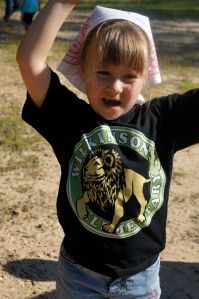 This spring I finally did a campfire with the girls. The week before we learned about fire safety and how to build a fire. We learned the terminology and practiced building one with food. And most importantly we made blinged out some bandanas for our campfire!