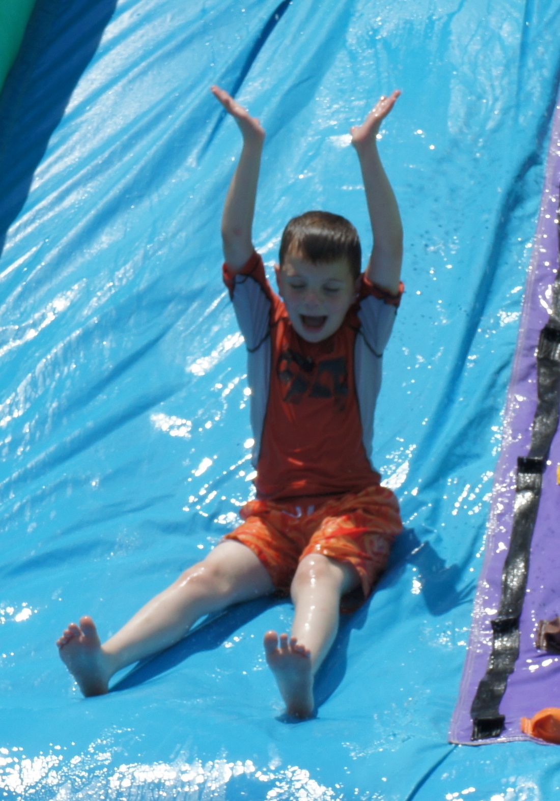 It was a busy day on Sunday! A FULL house in church! Hardly any where to sit at the luncheon because so many people came!! And a water slide after lunch. So cool!
