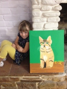 She insisted that I take a picture of her with her painting inside her art studio. She LOVES art class.