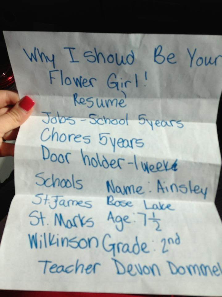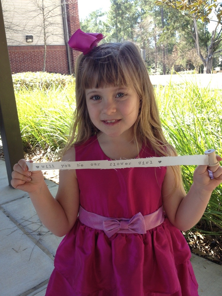 Madie has been a flower girl twice. Ainsley has never been in a wedding. When she heard that someone she knew got engaged, I think she and Madie jumped at the chance to apply their charms to see if Ainsley could get the job. Chris and I had no clue this was going on. I knew she was interested in the position but I told her that usually couples pick a family member.
