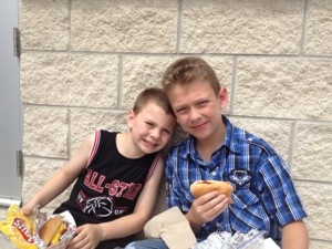 I got this picture at the 3rd grade picnic! They are both enjoying the hot dogs and other goodies! It is so sweet to see Ben and his new friend together.
