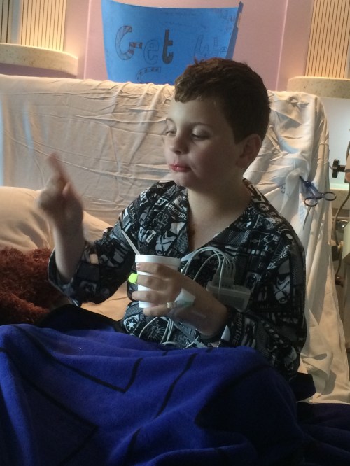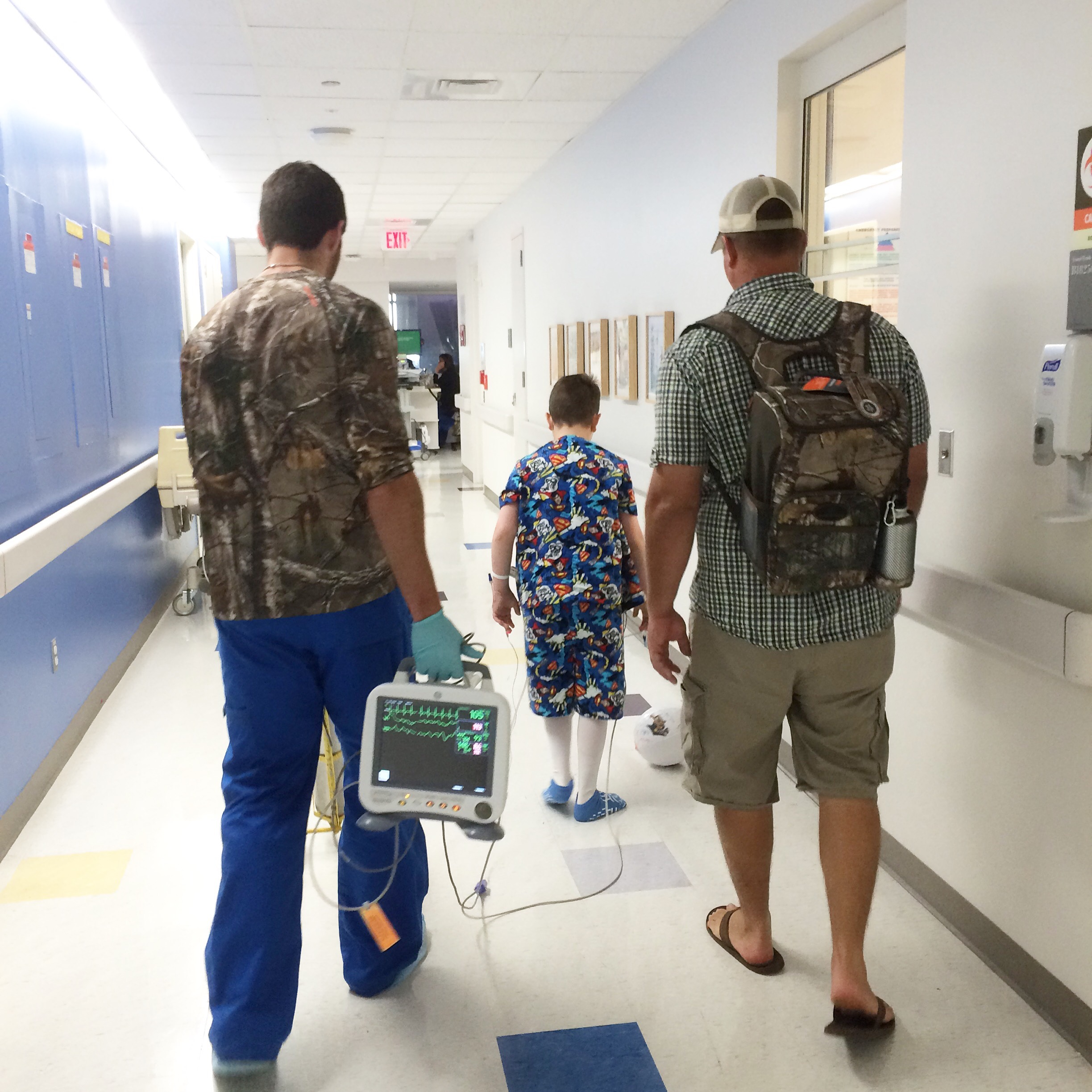 Ben blood pressure has been a little crazy today. But it is getting better. They increased his blood pressure mess and his diuretics. His lung X-rays are getting cloudier each time, so they worked hard to get it better by the afternoon X-ray. But our efforts (walking, pounding, etc.) haven’t started working yet. They will. So between a cloudier X-ray and the fact that Ben got dizzy and dropped his pulse suddenly while lying in bed means another day in the ICU. I think it is just because he is so darn cute . . . I mean handsome. Or the awesome super hero Jammie’s that all of the staff comment on. They just like to have Ben hanging around another day.