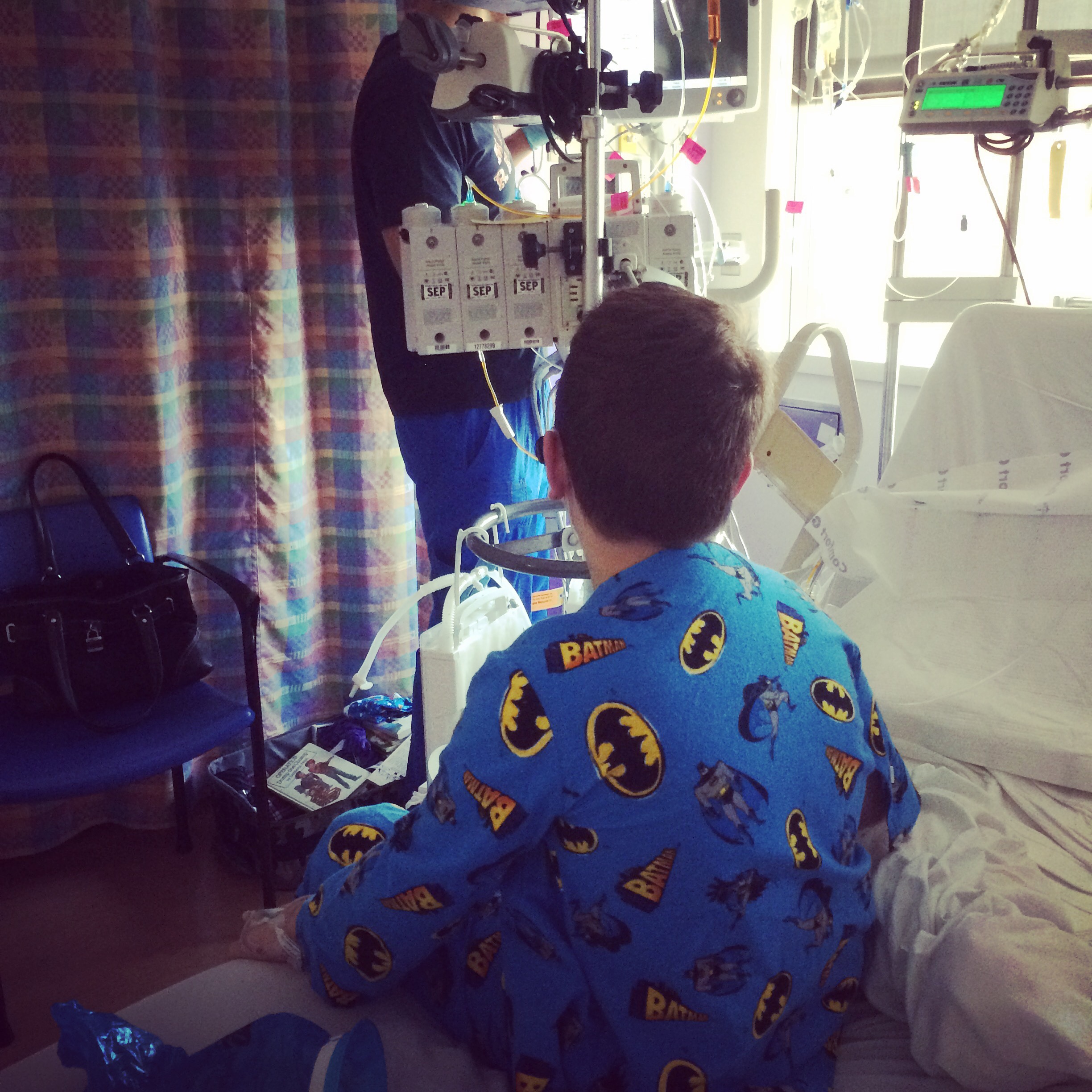 So we didn’t quite get to walk, but he stood for five minutes and then was ready to pass out. But he tried! He really wanted to walk but the effort exhausted him.