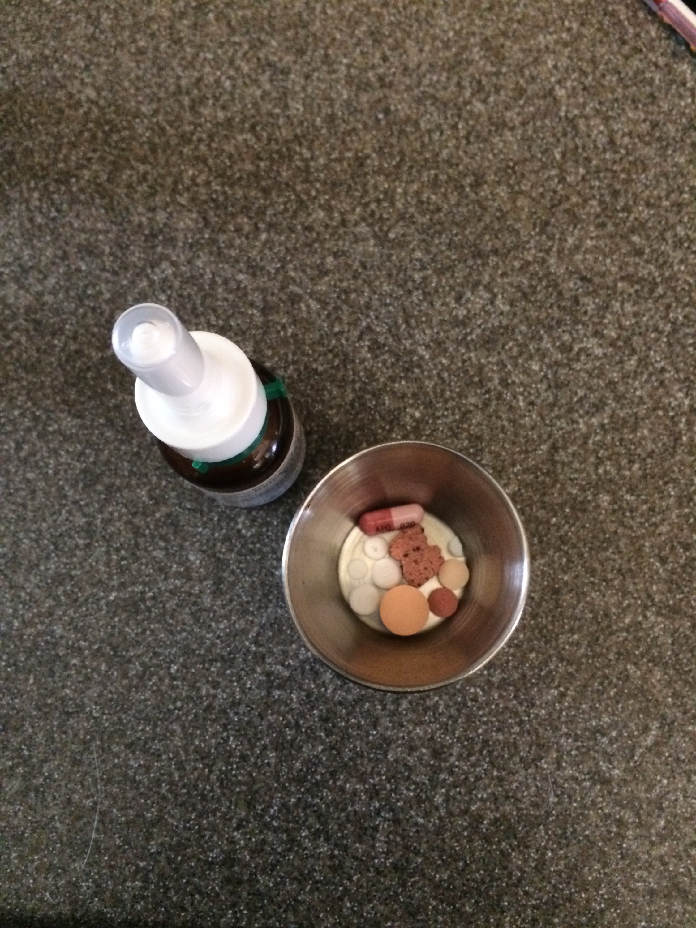 Ben is slowing getting used to his new medicine routine. He has been taking medicine for most of his life but for the last five months he was able to greatly reduce his medicine to just stomach and allergy medicine. Now he back up to a large amount again.