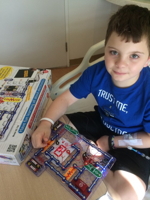 Ben is building snap circuits and learning about electrical circuits. Crazy. Thank you to Chris’ godparents for sending him this awesome new toy to play with